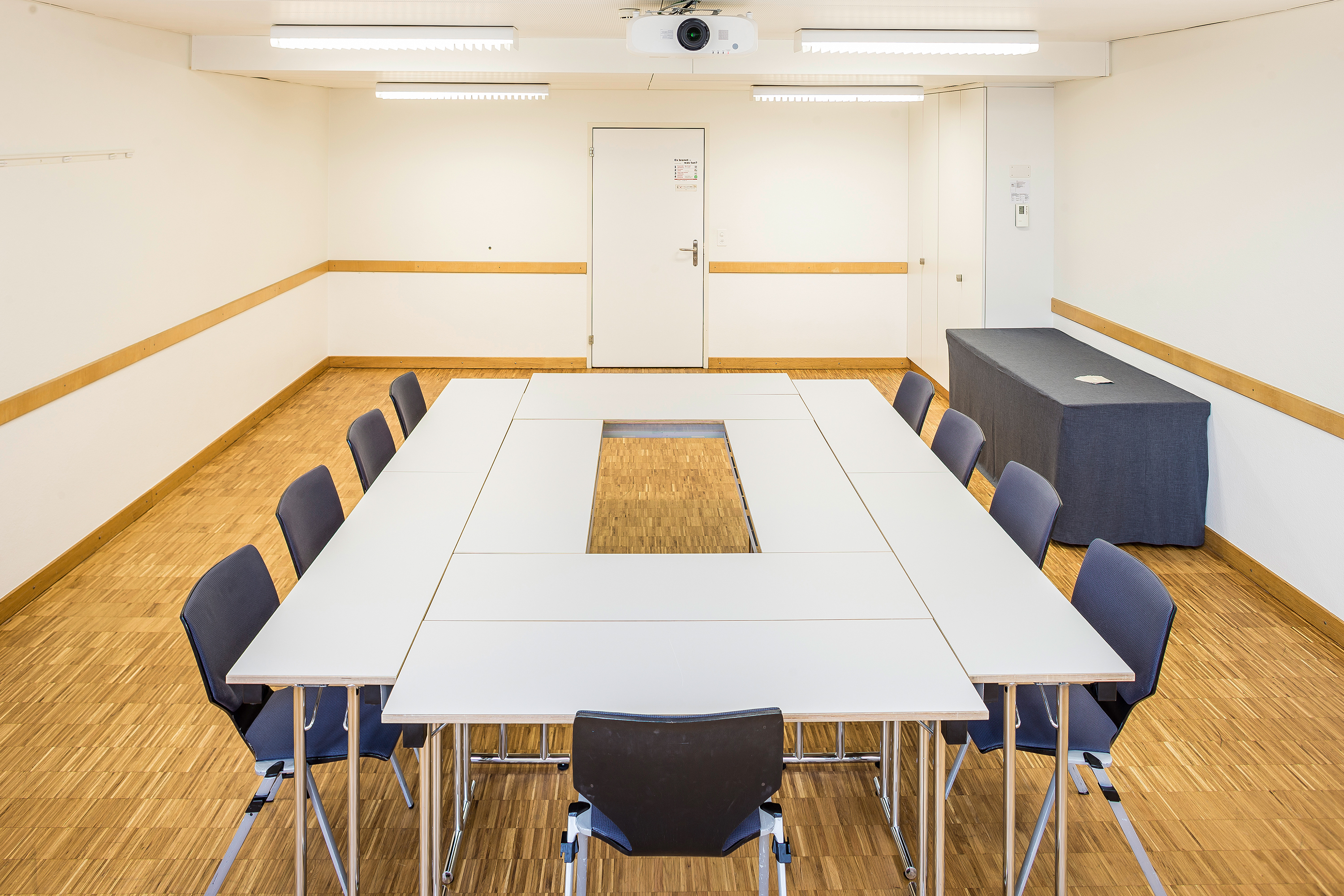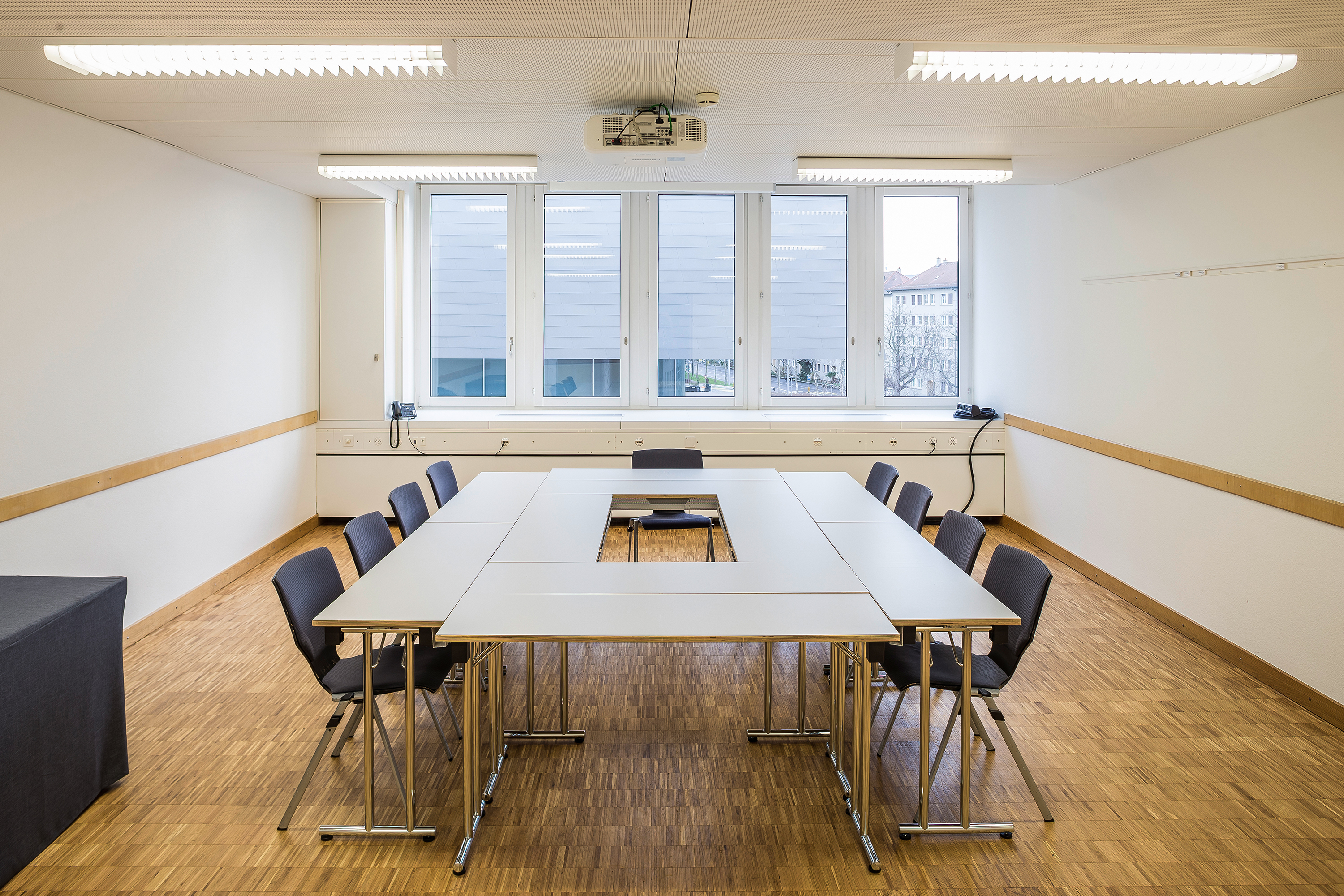 Dieser kleinere Kongress- und Konferenzraum verfügt über einen direkten Zugang zum Foyer im 2. Stock. Er eignet sich als Breakout-Raum oder für Boardmeetings und kann auch einzeln genutzt werden.