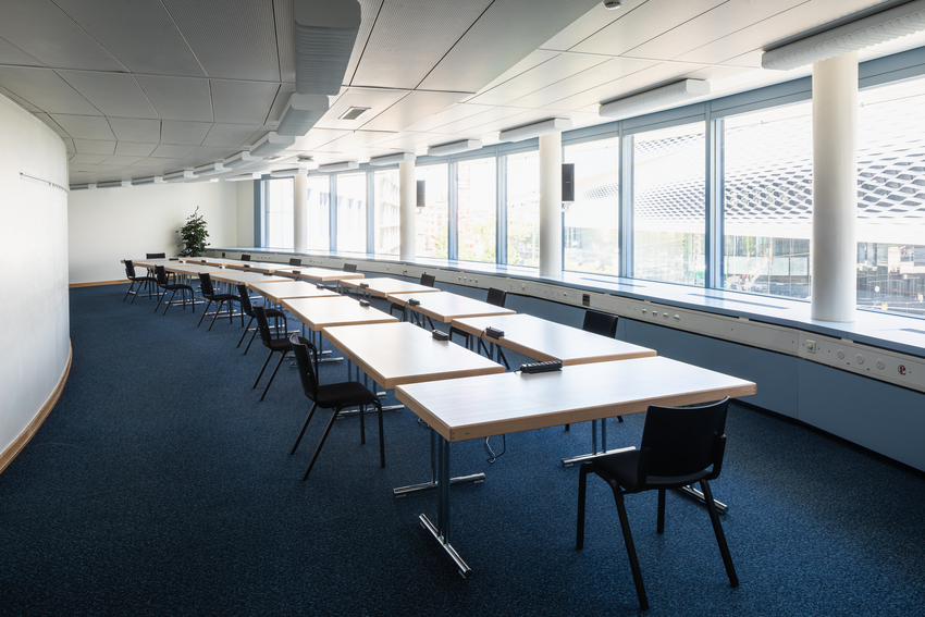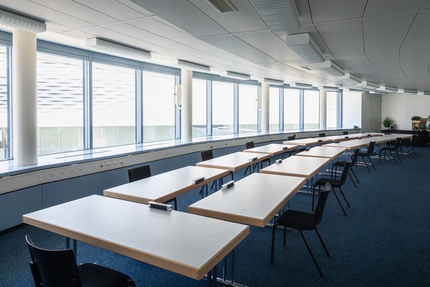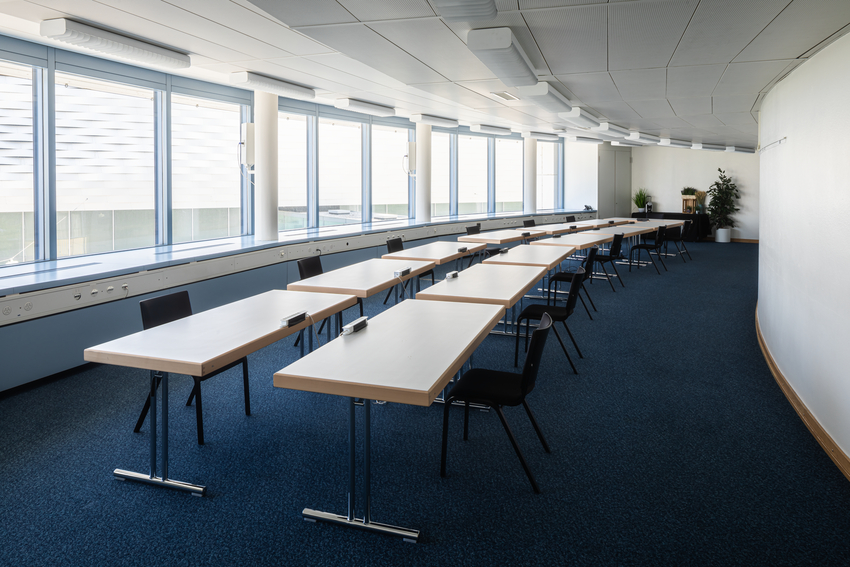 Als einziger der sechs kleineren Räume mit Zugang zum Foyer im 2. Stock bietet er direkten Blick über den Messeplatz. Dadurch eignet er sich besonders gut als Breakout-Raum oder für Meetings.