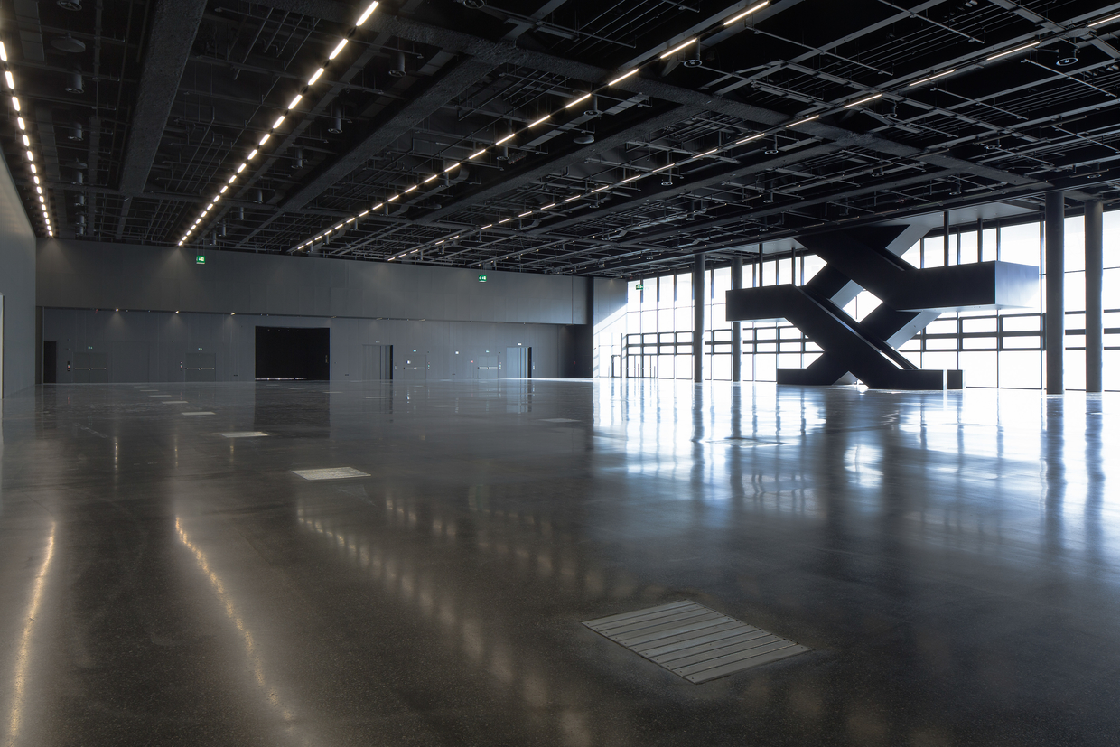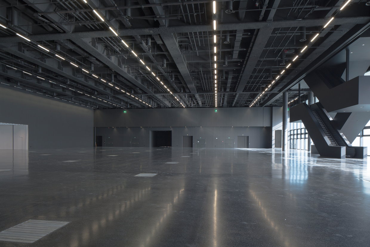 multifunktionale Halle ohne Säulen im Erdgeschoss des Hallenkomplexes von Herzog & de Meuron