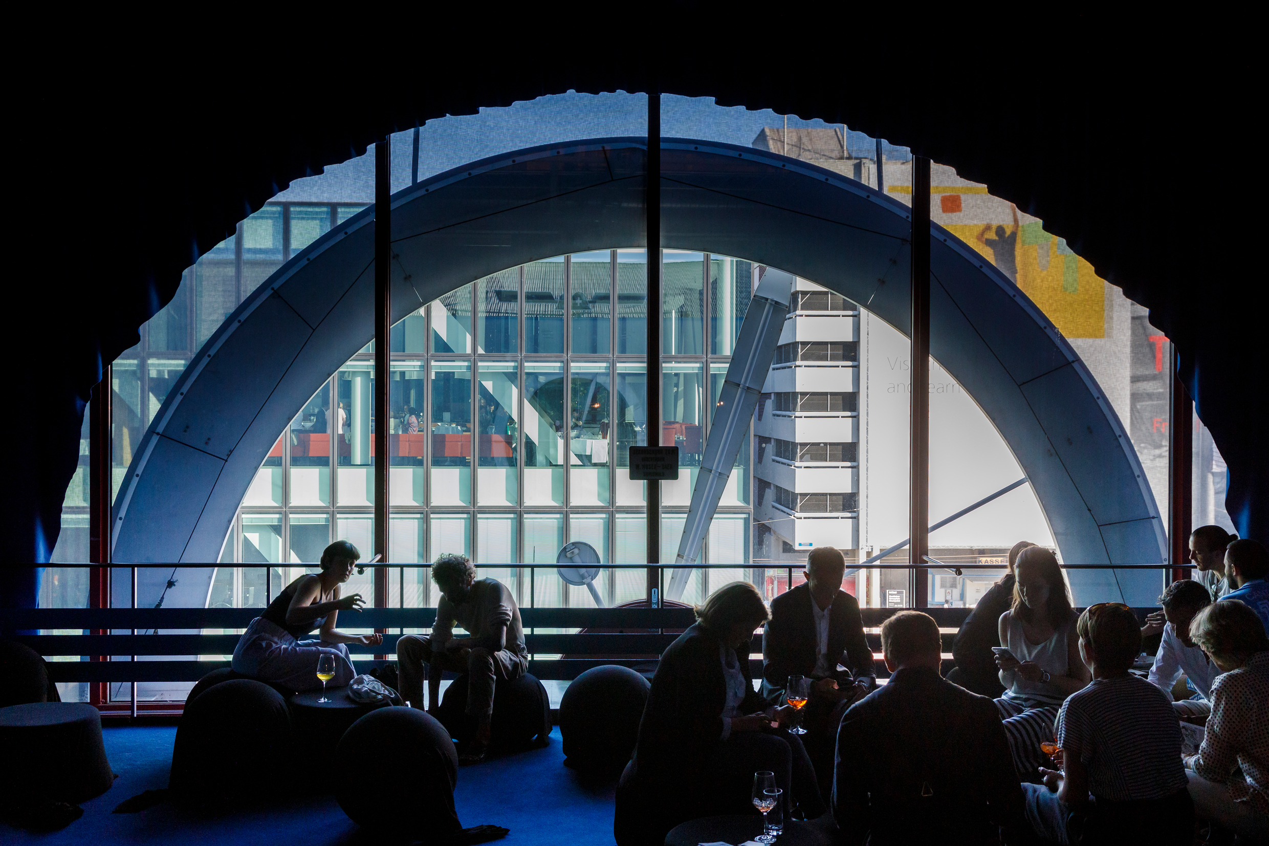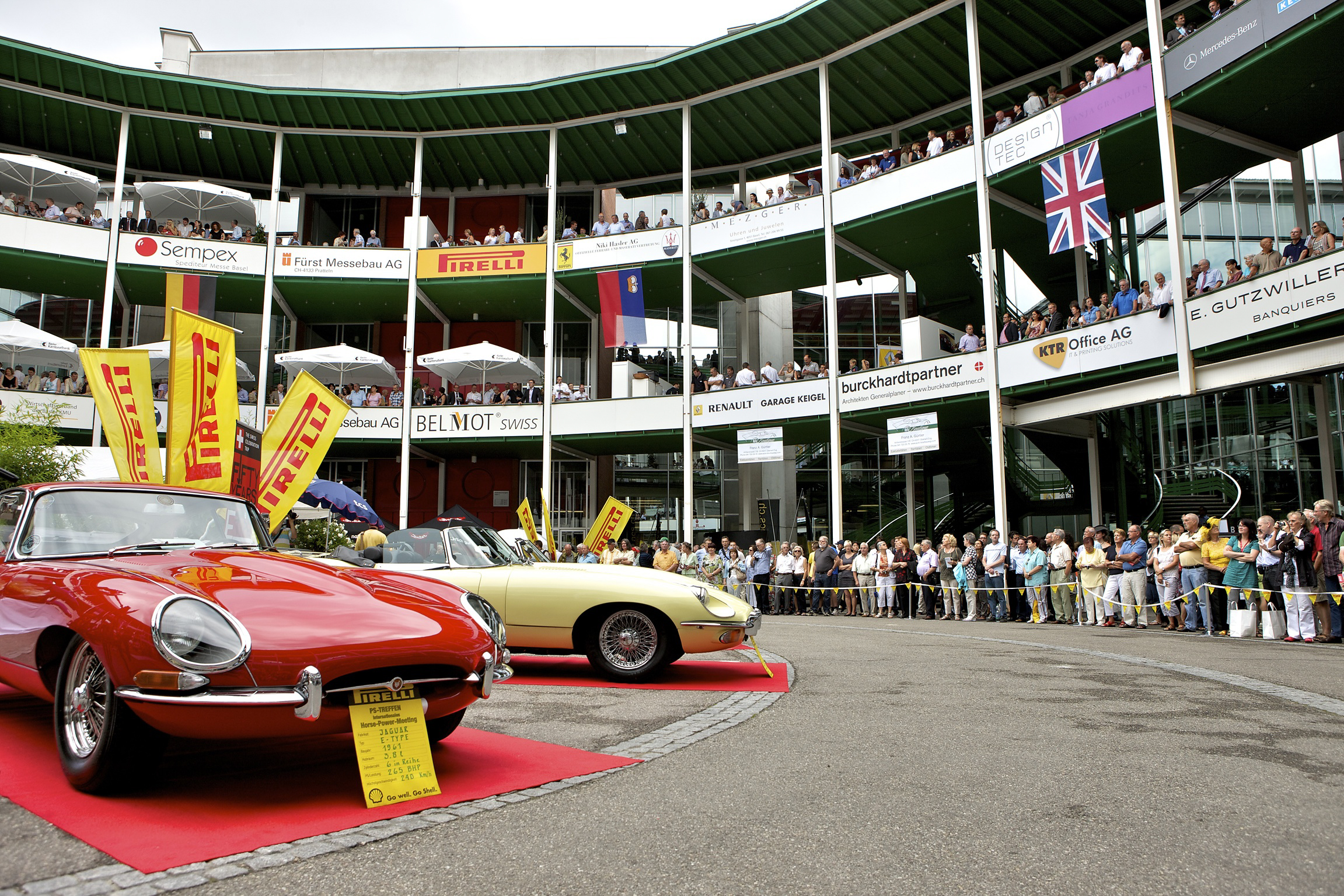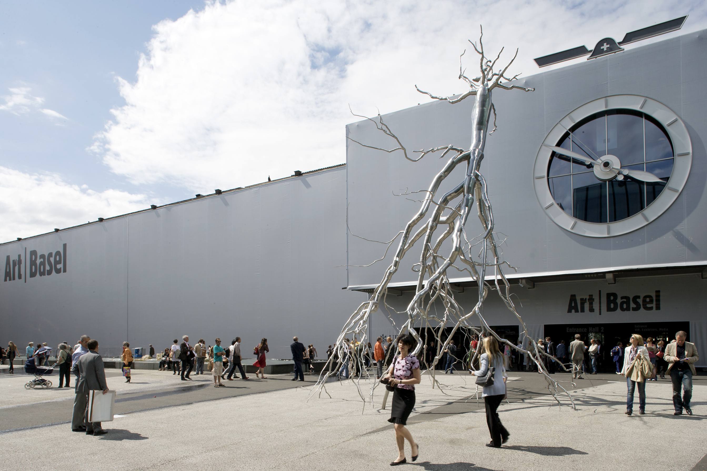 Die markante Uhr über dem Eingang ist das Wahrzeichen der Messe Basel. Im Inneren überzeugt der denkmalgeschützte Bau mit offenem Rundhof. Die Galerien bieten Rahmen für Indoor- und Outdoor-Formate.