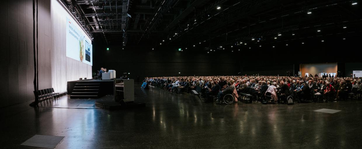 Bell Food Group AG has held its annual general meeting in our Event Hall for many years. On these occasions, we welcome 1800 people to the annual AGM, followed by a three-course meal in Hall 1.1.