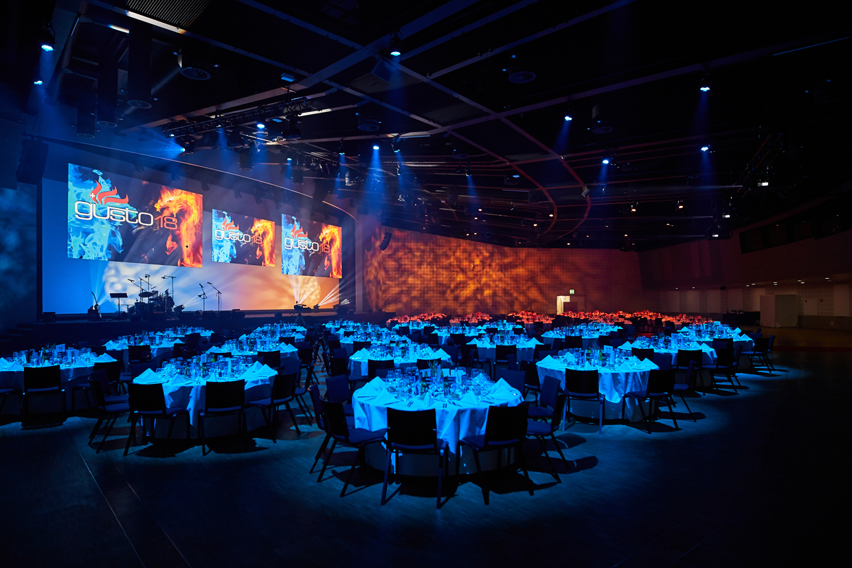 The largest room at the Messe and Congress Center Basel. Equipped with a stage and comprehensive technical facilities, it’s perfectly suited for a wide variety of event formats.